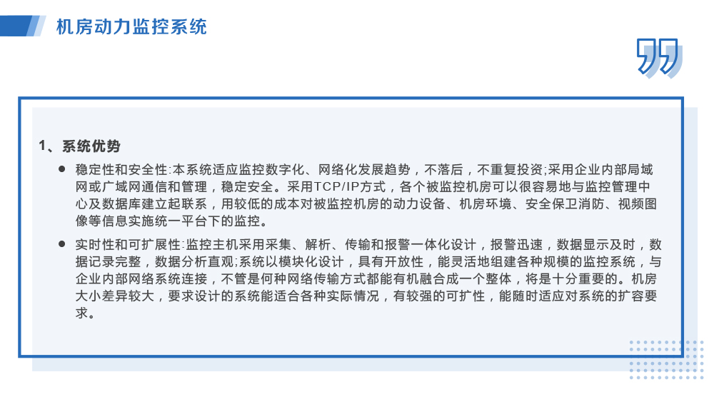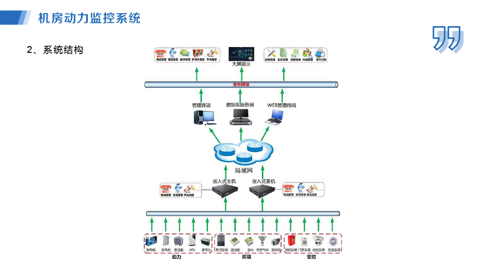 當(dāng)前位置:首頁 >> 主營業(yè)務(wù) >> 設(shè)備管理系統(tǒng) >> 機房動力監(jiān)控系統(tǒng)